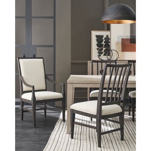 The Kyna Upholstered Arm Chair stands as a statement piece with its plush seating and graceful arms, ideal for anchoring the ends of a dining table or as a stylish accent in any room, effortlessly enhancing the surrounding decor with its well-crafted silhouette.