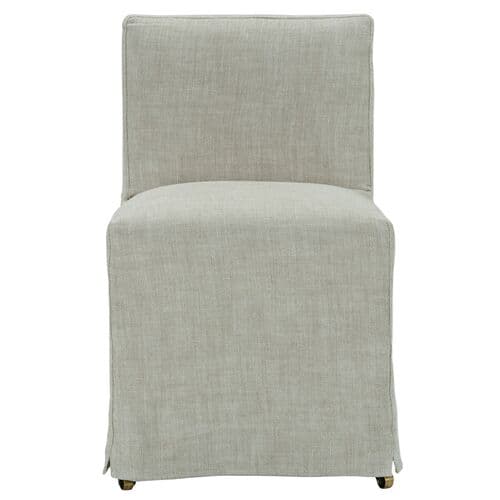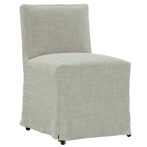 The Charli Slipcover Dining Chair adds casual comfort to any dining setting. These chairs are not only stylish but also practical, featuring a removable slipcover. The feel of the linen material enhances the overall experience, making it a perfect addition to your dining space.
