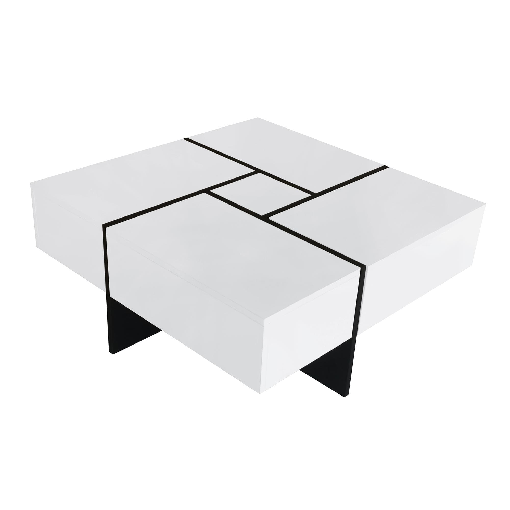 Elevate your living room with the ON-TREND unique design coffee table, featuring a sleek UV high-gloss finish and a square tabletop divided into five sections for a modern puzzle look. This innovative coffee table offers four hidden storage compartments under the sliding top, perfect for keeping your space organized. The extendable sections can be adjusted in four different directions, making it versatile for various group sizes or activities. Made from high-quality particleboard, this durable table ensures a smooth and reliable experience for years to come.