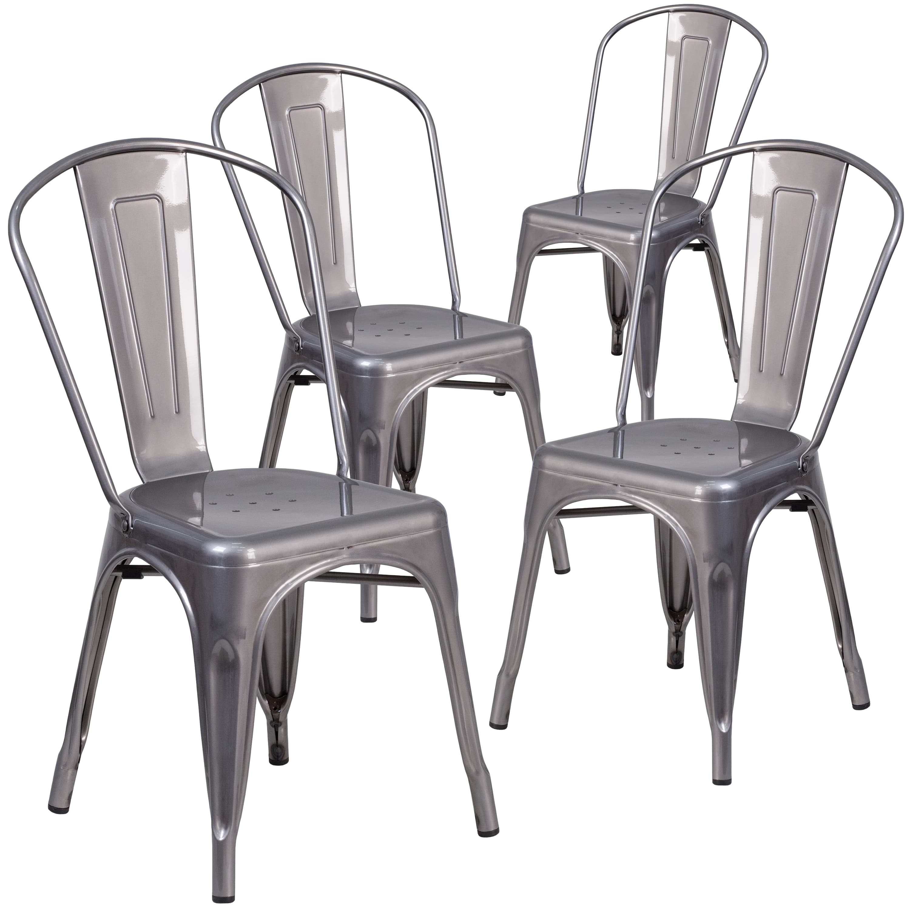 Open Box - Flash Furniture Clear Coated Metal Indoor Stackable Chair - Set of 4 - Gray