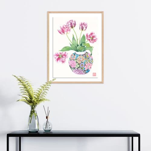 Gabby Malpas - Tulips in a Millefleurs Vase Painting - White | Painting, Decor, Art Prints