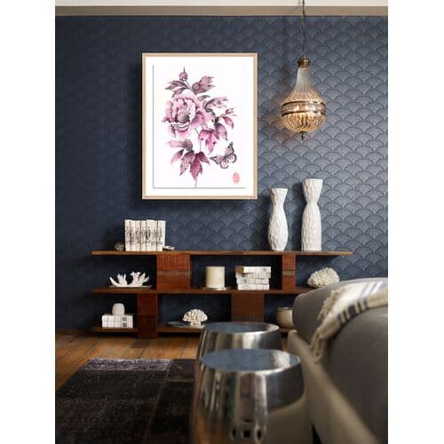 This work from Gabby Malpas brings any wall to life with its vibrant florals and detailed porcelain vessels. Printed on high-quality paper with deckled edges, floated over a mat, and displayed in a simple wood frame, this piece arrives ready to hang. Gabby Malpas creates joyful, intricate watercolor works. Locally grown flowers and fruits picked nearby are rendered with tender warmth, often borrowing from the delicate aesthetics of Chinese ceramics and Southeast Asian batik fabrics. She works on high-quality art paper which she sometimes stitches together to add texture. Gabby trained as a ceramicist in New Zealand and has lived for many years in the UK. She now resides in Sydney, Australia.