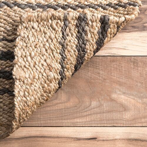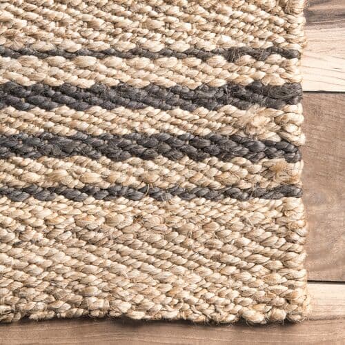 This striped rug was handcrafted of eco-friendly jute, the softest of the natural fibers commonly used for floor coverings. Variations in the natural neutral tones give the rug an inviting sophistication and depth. A rug pad is recommended to help prevent slipping.