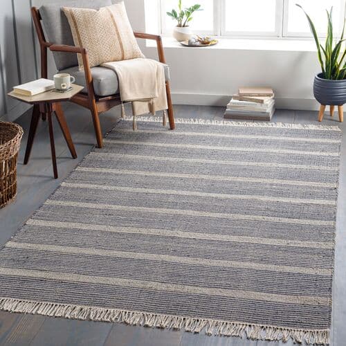 Jute is the softest of the natural fibers used in floor coverings. Here its handwoven with cotton for added durability. With its variegated stripes and 2.5-inch-long fringe, this flat-weave rug will bring artisanal allure to any space. A rug pad is recommended to help prevent slipping and extend the life of the rug.