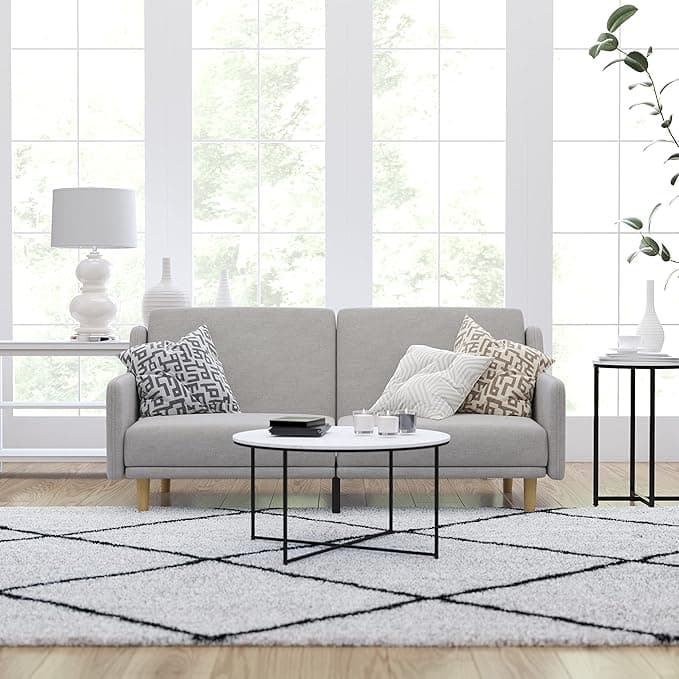 Amazon.com: Merrick Lane Niklas Mid Century Modern Split-Back Sofa Futon - Gray Faux Linen Upholstery - 3 Positions Upright, Recline, Flat - Wooden Legs - Removable Arms : Home & Kitchen