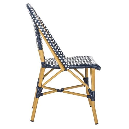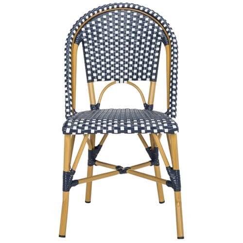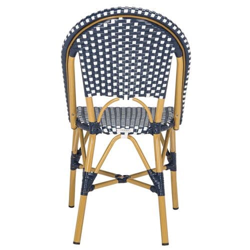 These bistro-style side chairs add a touch of casual charm to any setting, indoors or outdoors. Made from aluminum, they feature a bamboo-inspired design, woven seat, and reinforced joints wrapped in all-weather cord to mimic wicker. The stackable design allows for convenient storage during the off-season.