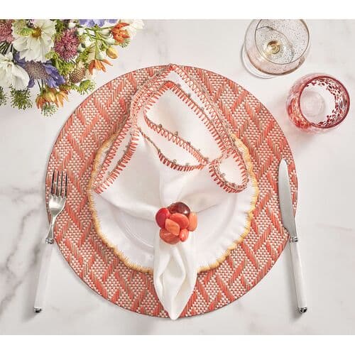 The versatile Basketweave Placemat is perfect for summertime entertaining. The Basketweave Placemat features a woven pattern in polyvinyl thread. The unique weave and two-toned yarns create a stunning mix of colors. The versatile polyvinyl can be wiped down for easy care.