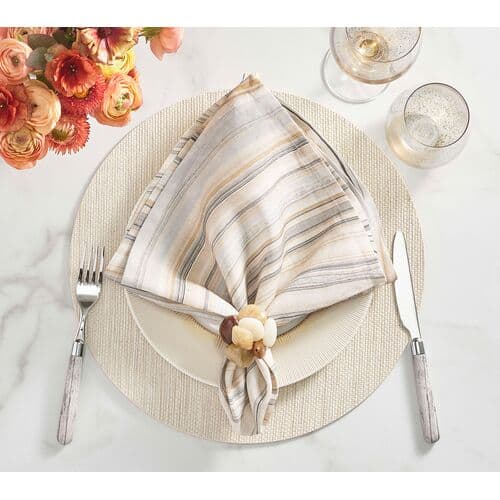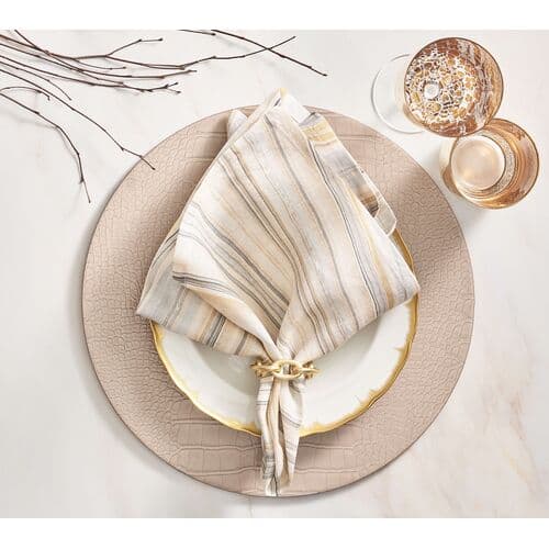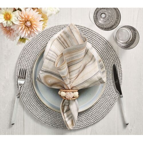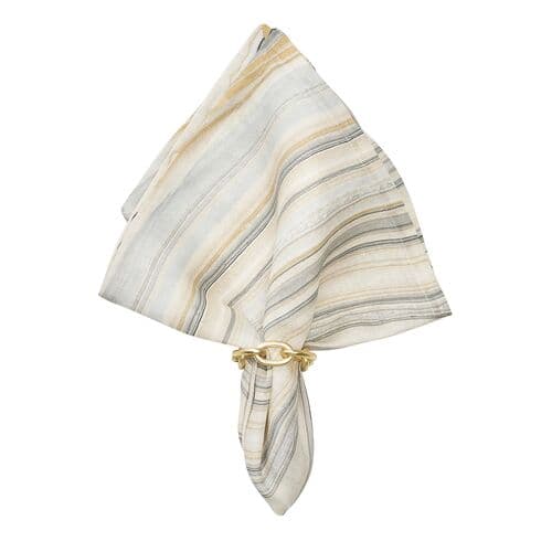 The Marble Napkin depicts marble created from limestone by heat and pressure in the earth's crust. Featuring bands that mimic the naturally occurring veins, the Marble Napkin is the perfect neutral style.