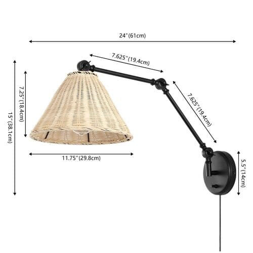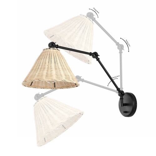 Give an airy and charming update to your walls with our Benix wall sconce. A sleek cone-shaped pendant is weaved in rattan to bring rich artistry and natural textures to your home. The arm features an in-pivot hinge to assist in positioning and directing light to the desired area. Airy, stylish, and highly functional, our wall sconces are perfect for refreshing and illuminating your living room, bedroom, or home office.