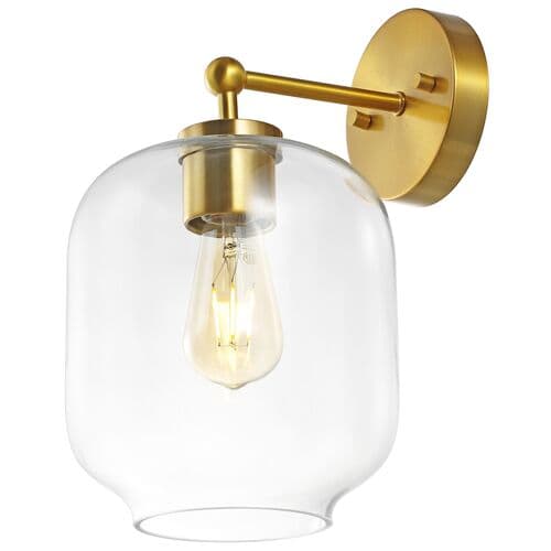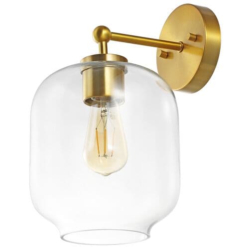 Elevate your space with the effortless style and sophistication of our Kreston wall sconces. Refined to attain a timeless appeal, our wall sconces are sure to serve as a classy and stylish addition to your home. Its clear glass shades combine clean lines and sleek curves to attain an eye-catching presence. The wall sconces add a perfect touch of polish and elegance to any room. Our set of wall sconces include Edison-style bulbs to beautifully illuminate and frame your entryway, bedside, or sideboard.