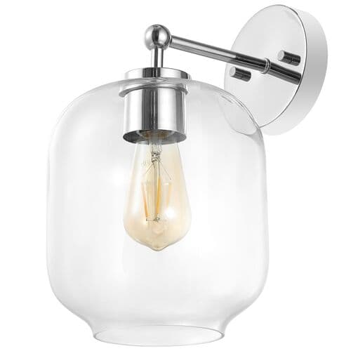 Elevate your space with the effortless style and sophistication of our Kreston wall sconces. Refined to attain a timeless appeal, our wall sconces are sure to serve as a classy and stylish addition to your home. Its clear glass shades combine clean lines and sleek curves to attain an eye-catching presence. The wall sconces add a perfect touch of polish and elegance to any room. Our set of wall sconces include Edison-style bulbs to beautifully illuminate and frame your entryway, bedside, or sideboard.