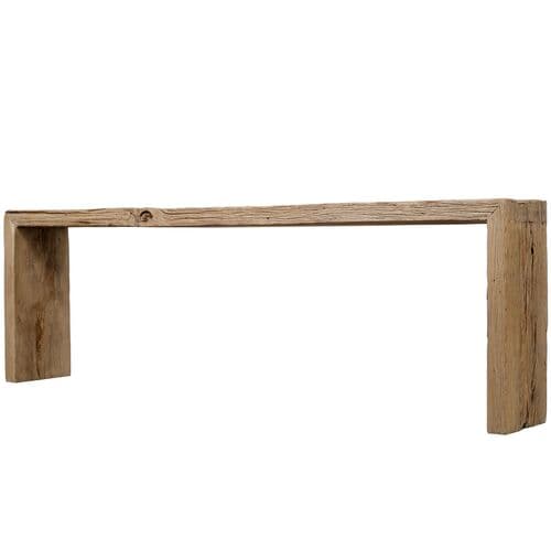 The minimalist design of this handcrafted console table allows the eye-catching grain and beautifully weathered finish of the pine to command attention. Due to the nature of the materials and the artisanal craftsmanship, no two tables are exactly alike.