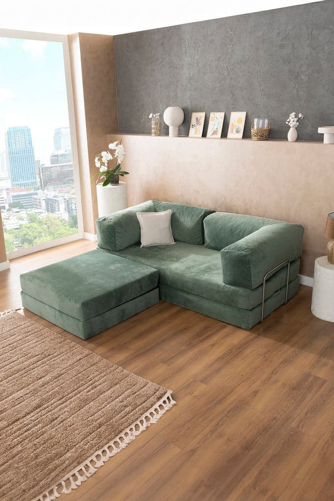 Meet the Poufudic Corner Teddy Sofa & Activity Bed & Teddy Couch, which brings comfort and versatility to your home! 🌟TEDDY is a sofa bed, in accordance with the simple, classic meaning. He has no legs, handles or advanced mechanical constructions. Instead, he gives the softest bear hugs and easily transforms into a large bed.Available in 9 colors. All sofas come with polished chrome bars.TEDDY consists of two mattresses and two angled cushions, which can be easily moved around. He is held together by three metal bars in chrome-plated iron, which are also mobile. The mattresses are of high quality cold foam and relatively hard, so that they are both good to sit and sleep on. The angled cushions contain shredded foam, surrounded by an inner fabric sleeve, which makes the outer fabric easy to zip off, without interacting with the shredded foam. Last but not least, TEDDY is wrapped in soft corduroy fabric. The fabric is of very high quality and is extremely durable.This stylish and functional piece of furniture offers the versatility every home needs. Poufudic, which can be used as a stylish corner sofa, a comfortable reclining chair, and a practical activity bed, adapts to your every moment. 🛋️🛏️💤🔹 Modern Design: A stylish and elegant look that fits any decoration.🔹 Three in One: A versatile furniture that you can use as a corner sofa, reclining chair and activity bed.🔹 Maximum Comfort: It makes your resting moments more enjoyable with its ergonomic structure and soft cushions.🔹 Easy Transformation: Provides instant transformation thanks to its practical mechanism.Poufudic Corner Sofa & Activity Bed & Lounging Chair is a perfect choice to create more space in your home and create a comfortable living space. Ideal for those looking for a solution that is both stylish and functional!🌟 If you want to experience this comfort at home, choose your Poufudic Corner Sofa & Activity Bed & Lounging Chair now!Overall Dimensions of the Product: (200 x 100 x 35 cm / 78 x 39 x 14 inch)Product Dimensions Centimeters / Inches- 2 Floor Seating Cushions (200 x 100 x 17 cm / 78 x 39 x 6.5 inch)- 2 Floor Seating Cushions (100 x 100 x 17 cm / 39 x 39 x 6.5 inch)- 2 L-Shaped Backrest Pillows (100 x 100 x 39 cm / 39 x 39 x 15 inch)- 4 Iron Support MechanismsWashing instructions:You can easily zip off the fabric on both cushions and mattresses. This makes it possible to wash the fabric at a low temperature. It is recommended to wash at a maximum of 30° and with mild/extra gentle soap. We recommend turning the fabric inside out when washing.#MinimalistSectionalCouch #MontessoriSofaBed #WashableCovers #GamingCouch #HomeDecor #FloorSeat #homedecor #livingroomsofa #livingroomcouch