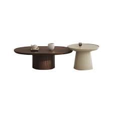 Modern Brown Wood Nesting Coffee Tables with Oval Shape Tops - 47