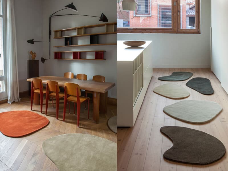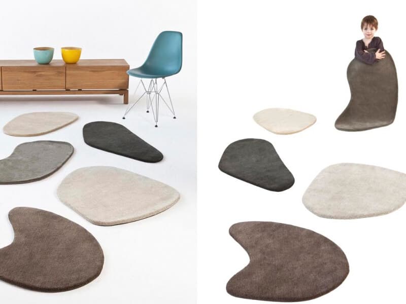 The Stone rug collection was designed by Diego Fortunato for Spanish brand Nanimarquina. These modern innovative wool stones create a path through the rooms of contemporary homes, like a riverbed of smooth pebbles that adapt to long corridors. Hand tufted out of pure New Zealand wool, these stones with their irregular contours offer a myriad of combinations for interiors, acting as stepping-stones for an imaginary stream. The earth tones adapt to different decorative styles, a gentle reminder of the basic elements in the world.