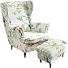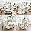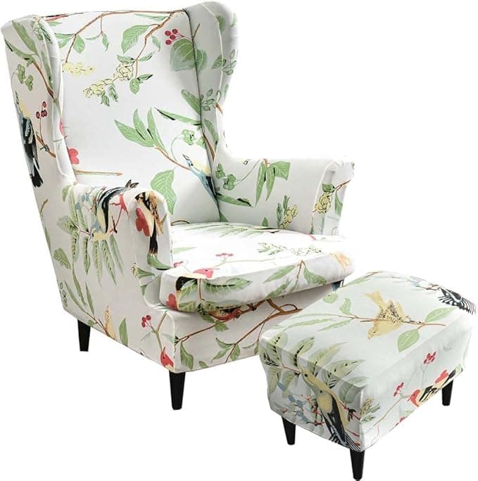 Stretch Wing Chair Cover Set Ottoman Slipcover 2 Pieces Wingback Chair Slipcover and 1 Piece Rectangle Storage Stool Cover Removable Armchair Sofa Covers for Living Room Bedroom (Color : #25)