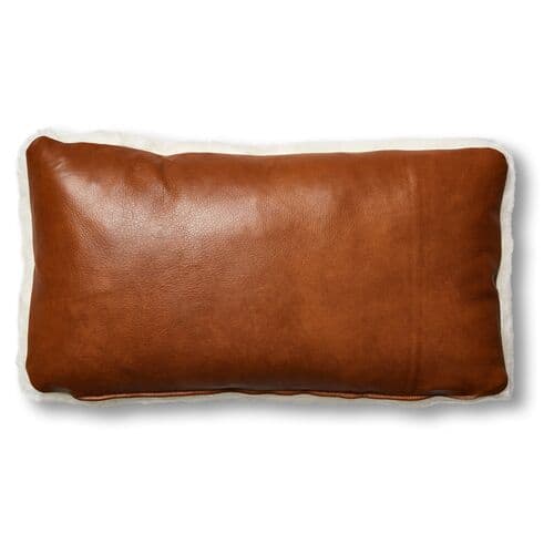 Rae 12x23 Contrast Lumbar Pillow - Ivory Shearling/Saddle Leather | Cushion, Bolster, Insert Included