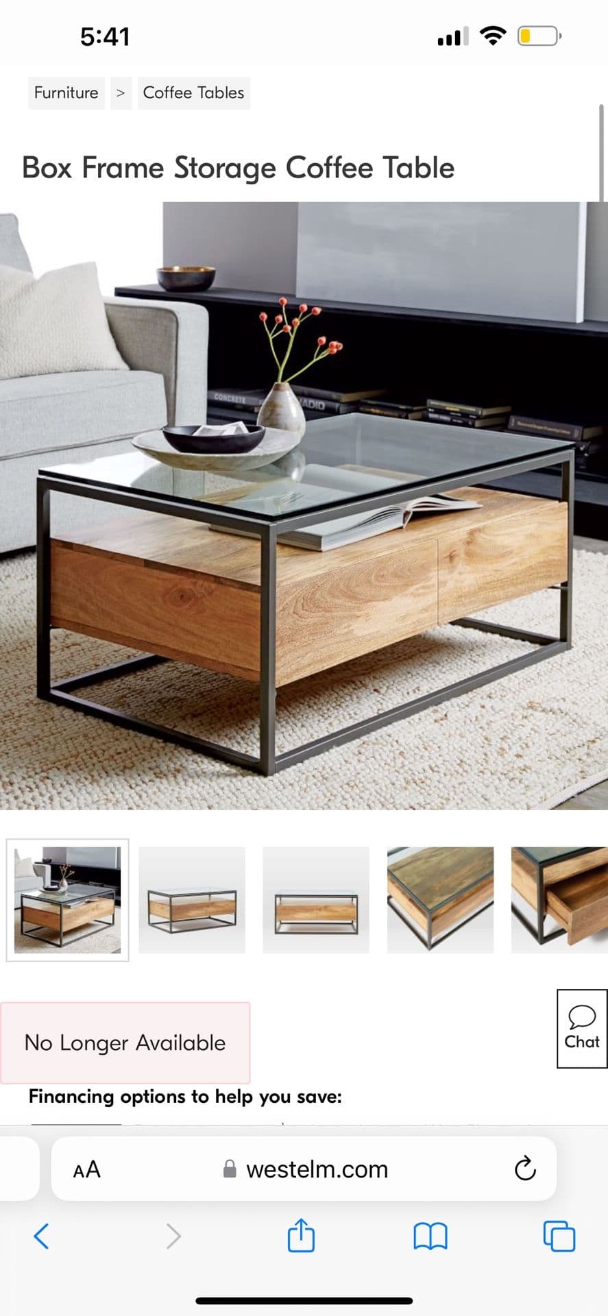 Used (normal wear), West Elm - Box Frame Storage Coffee Table