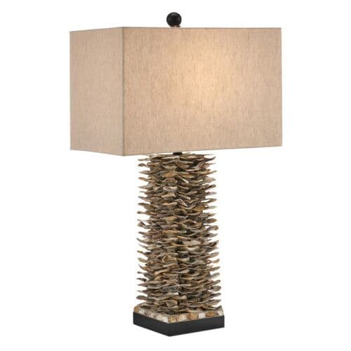 Villamare Oyster Shell Table Lamp - Natural Satin Black - Currey & Company - Brown | Desk Lamp, Bedside Lamp