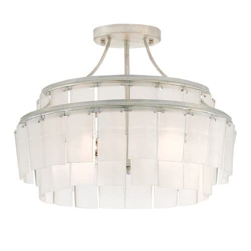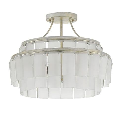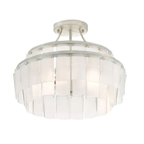 Vintner Semi-Flush Mount - Opaque White/Silver - Currey & Company | Ceiling Mount, Flush Fixture, Ideal For Entryway, Hallway, Bedroom