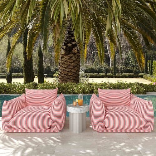 Nora Striped Stuffed Outdoor Armchair - Red | Lounge Chair, Easy Chair - Comfortable, Sturdy, Durable