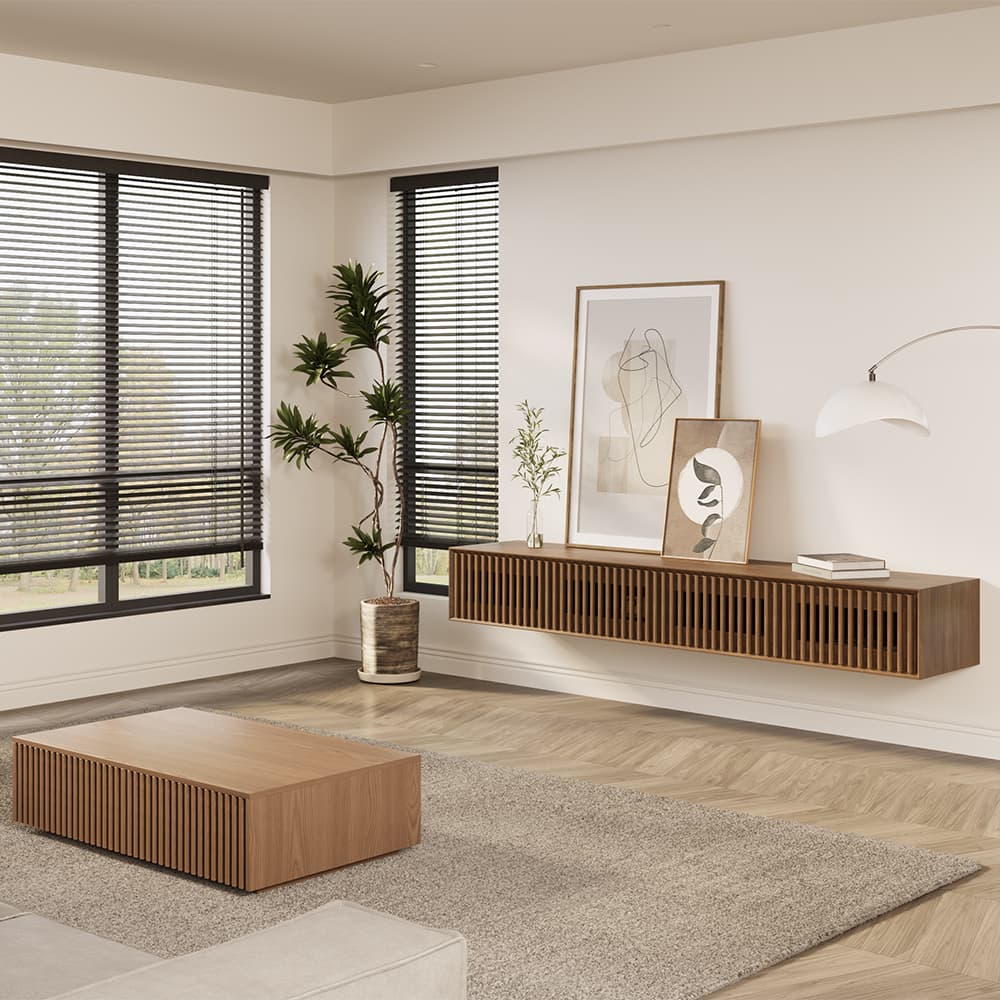 Mid-Century Modern TV Stand with Coffee Table, Walnut Color Living Room Sets, 78.74" TV Console + 47.24" Coffee Table