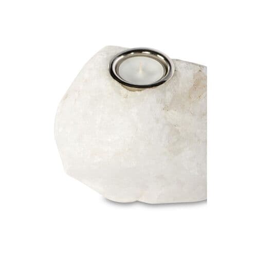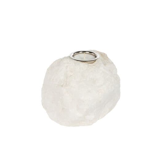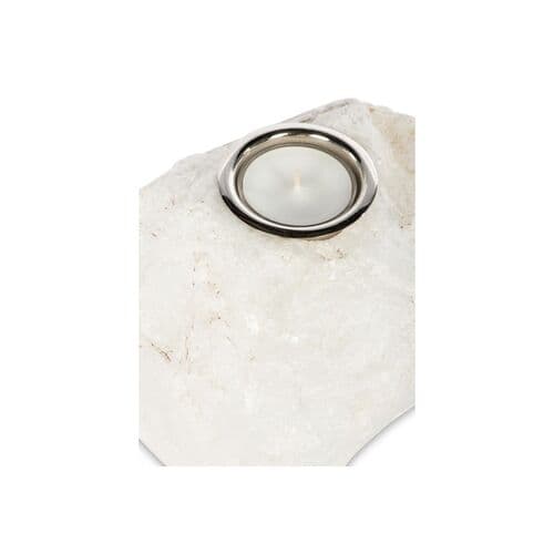 Naturally stunning, this votive holder is crafted of multifaceted quartz with a polished nickel detail. Because this item is made from natural materials, variations in color, shape, and texture may occur.