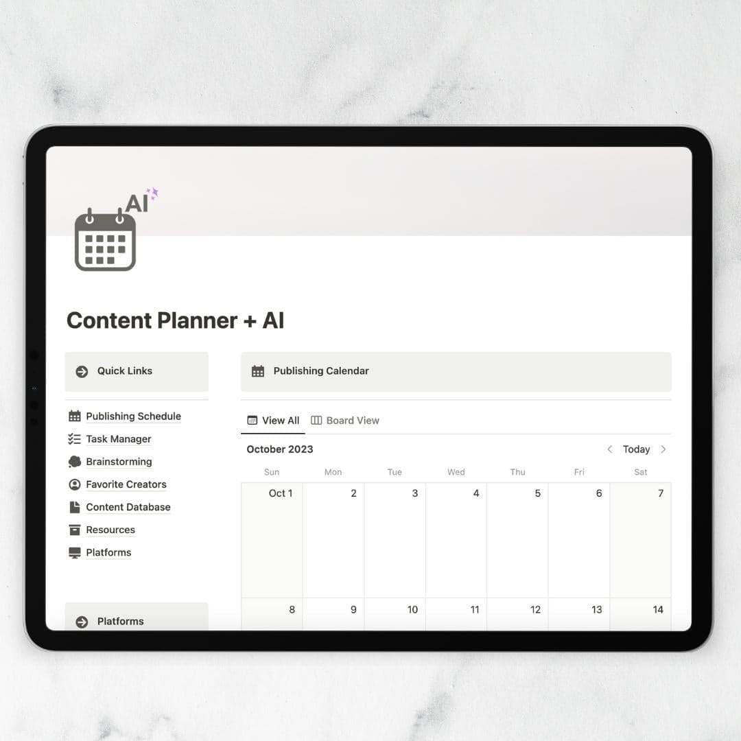 This template will help all content creators organize their posts, social media platforms, and more. We also use this template to schedule, plan, and brainstorm for The Organized Notebook! This template also features AI properties that will help you to generate your content from social media posts to video descriptions!