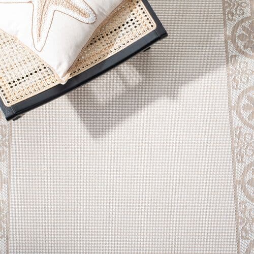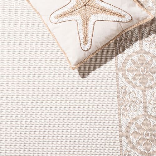 Elevate your living space with our exquisite Area Rug, a harmonious blend of functionality and style crafted for both indoor and outdoor use. This rug is woven to perfection using state-of-the-art Power Loomed technology, ensuring durability and consistent quality. Boasting a timeless color palette, our rug exudes a sense of calm and sophistication that complements any decor. With a low pile height of 1/4", it offers a sleek profile that is easy to maintain and perfect for high-traffic areas. Designed in Turkey, this rug is made from premium polypropylene that is not only soft to the touch but also inherently stain-resistant. The geometric pattern, highlighted with a sequence of ornate medallions and detailed borders, gives it an elegant, classical appeal that is sure to captivate and impress. Importantly, our product carries the OEKO-TEX certification, ensuring that it is free from harmful substances and safe for your family and the environment. The washable nature of this rug means that care and upkeep are simple, allowing you to keep it looking fresh and new for years to come. Ideal for accentuating your patio, deck, or any room within your home, this Area Rug brings both comfort and class to any floor it graces. Experience the blend of traditional design and contemporary craftsmanship with our Turkish-made gem.