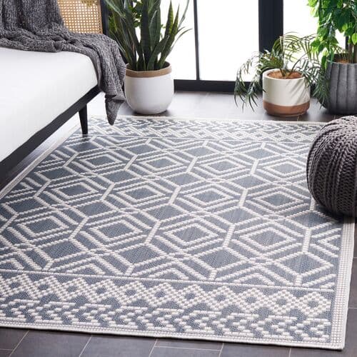 Elevate your living space with our exquisite area rug, a harmonious blend of style and practicality. Designed for versatility, this rug is ideal for high-traffic zones, both indoors and out, offering an effortless sophistication to hallways, kitchens, or outdoor patios. Expertly crafted in Turkey through a Power Loomed construction, this rug embodies precision and durability. Made from premium polypropylene Frize, it provides a soft yet resilient surface underfoot that's easy to care for and maintain. The rug features a captivating geometric pattern that exudes timeless elegance. The intricate design creates a sumptuous visual texture that complements both contemporary and traditional decors. As an OEKO-TEX certified product, this rug ensures that every thread, button, and other accessories have been tested for harmful substances and is harmless in human ecological terms. This certification underscores our commitment to environmental stewardship and consumer safety. Invite this stunning rug into your home or outdoor space and enjoy the perfect combination of fashion, function, and eco-conscious comfort.