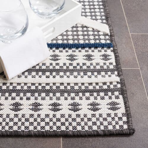 Introducing our sophisticated Runner Area Rug – the perfect blend of style and practicality for both indoor and outdoor spaces. This elegant runner is designed to bring a touch of modernity to any setting. Crafted in Turkey using advanced power-loomed techniques, this rug exhibits exceptional durability and a precise, intricate pattern that captures the eye. The construction is a combination of resilience and comfort with a blend of Polypropylene and Polyester, providing a soft yet robust surface underfoot with a pile height of 3/8". The design of our runner features an intricate pattern, showcasing geometric shapes and lines that exude an aura of timeless elegance and simplicity, adaptable to various decor styles. The subtle inclusion of accent colors within the pattern adds a dash of vibrancy to the overall neutral theme, enhancing the visual appeal without overwhelming the space. Moreover, our area rug is OEKO-TEX certified, ensuring that it is free from harmful substances and is safe for both you and the environment. It's a choice that reflects both your style and your commitment to health and sustainability. Whether you're looking to elevate your hallway, kitchen, or patio, this runner rug offers versatility, quality, and a design that will complement your home for years to come. Experience the perfect marriage of aesthetic allure and practical function with our Runner Area Rug.