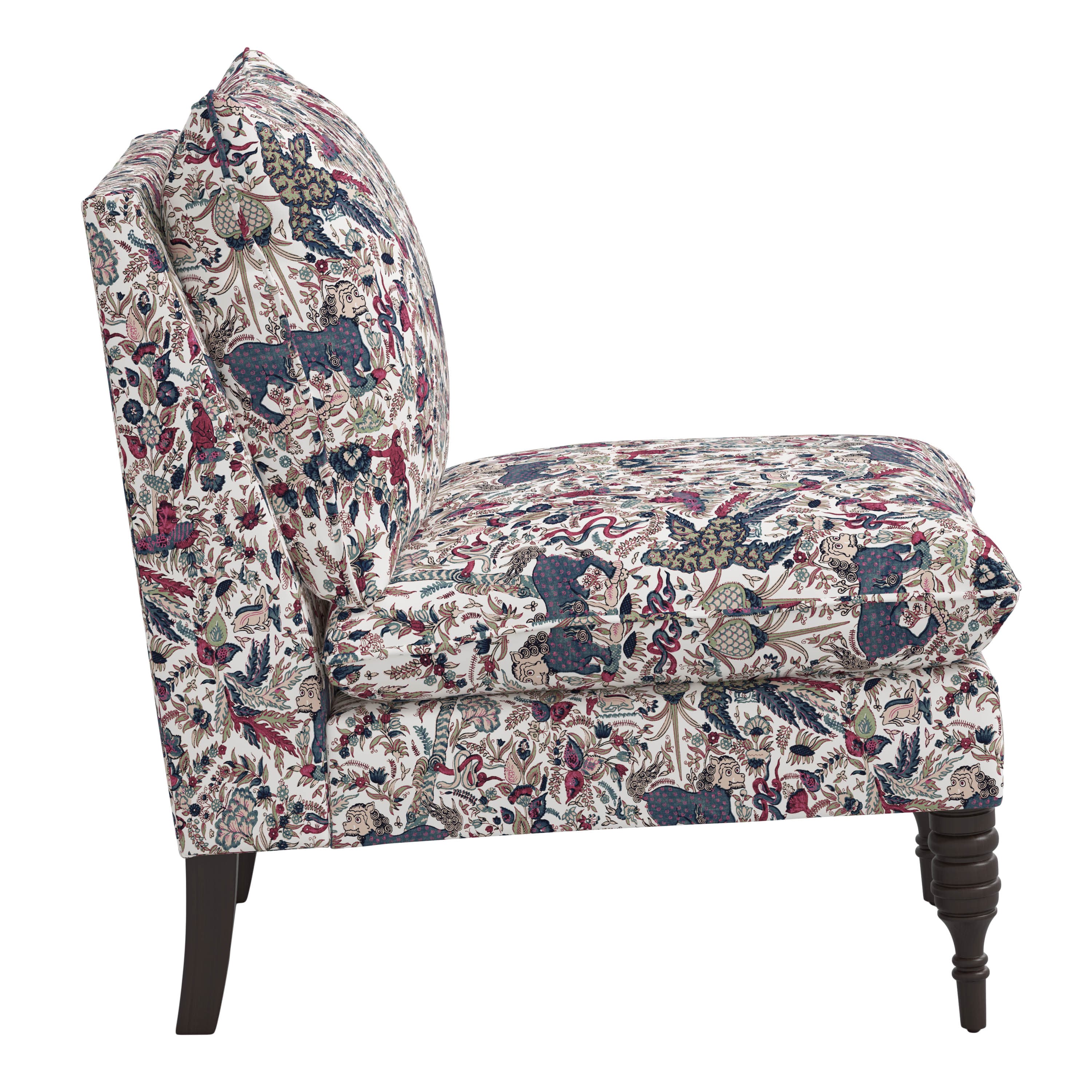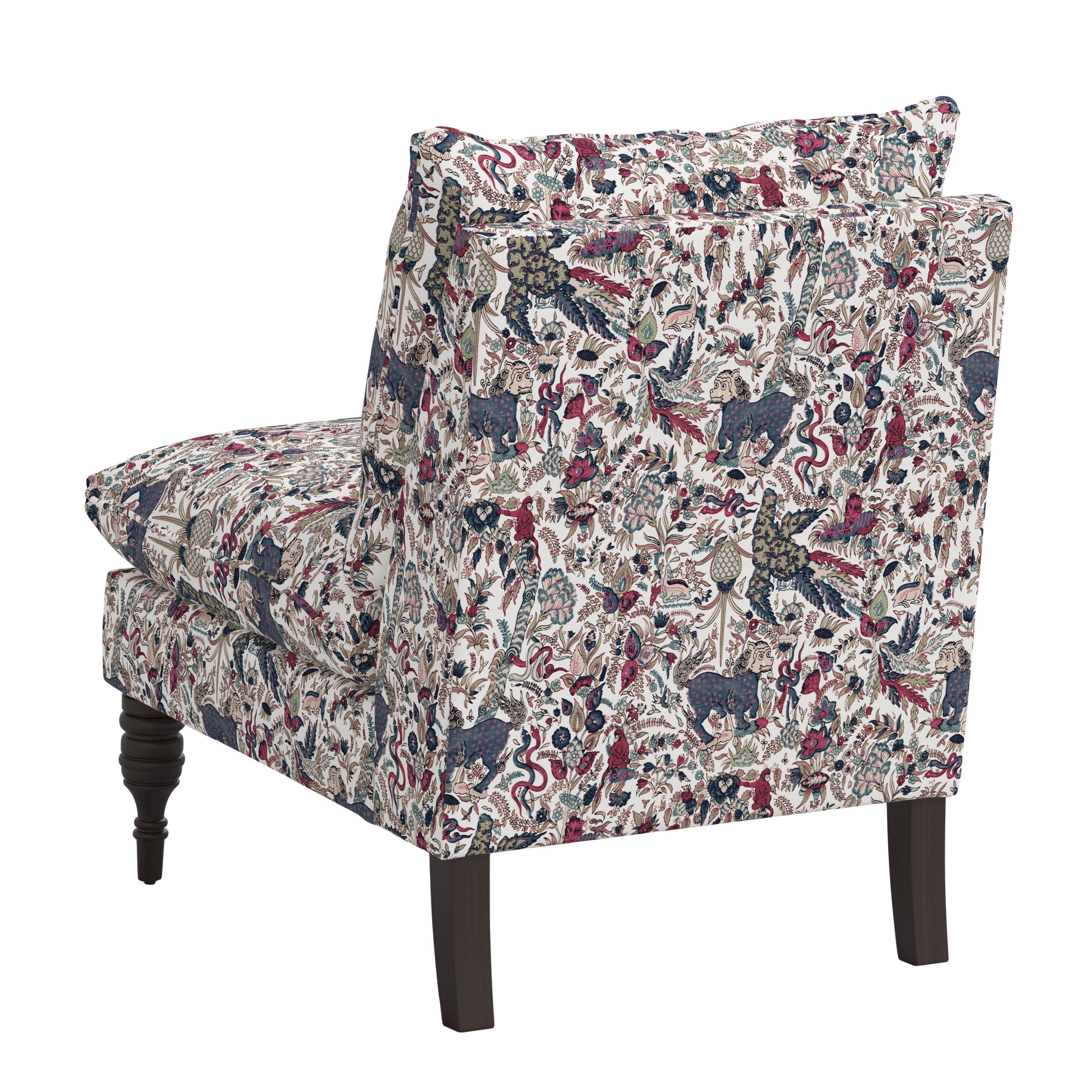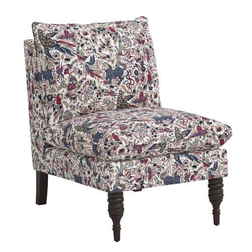 Add a charming hand upholstered Pillow top slipper chair to deliver a bit more flair to your living area or private space. This wonderfully versatile piece of furniture makes sense for almost any area of the home. The exquisite Bali Lion upholstery print is carefully arranged and serves as a marvelous decorative detail, while the solid construction and squared shape provide a foundation for longevity. A terrific accent piece.