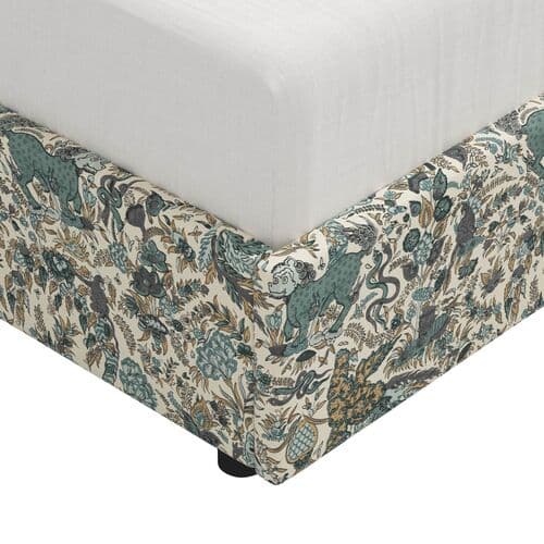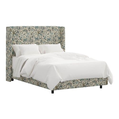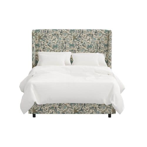 This square top bed features a gentle curved wingback design alongside a plain front. These elements blend perfectly to lend a touch of style and create a piece that will be the center of your bedroom design. The made-to-order headboard matches up easily with the included metal frame and hand-upholstered rails, making assembly simple. An inclusive transitional design makes it an easy addition to any bedroom space. All variations are made with a unique Bali Lion upholstery print.