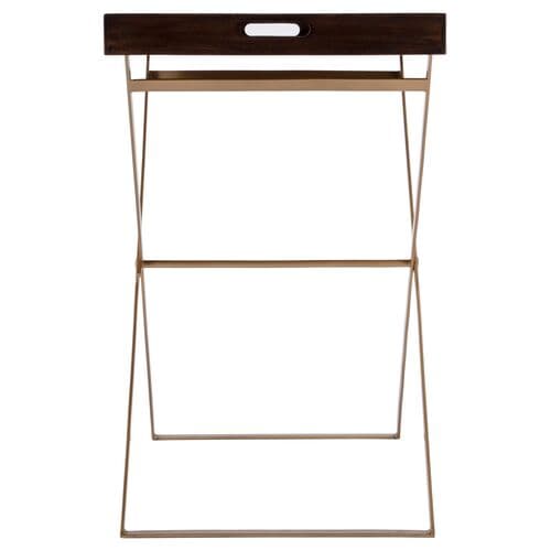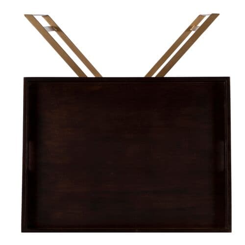 This tray table is a versatile companion for any setting, whether serving as a side table, end table, or bar tray table. Its tray can be effortlessly lifted off the base for various uses, and the legs conveniently collapse for easy storage. Perfect for hosting guests with drinks and snacks or as a charming everyday side table, this piece seamlessly blends functionality with elegance.