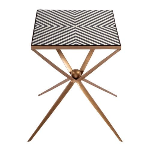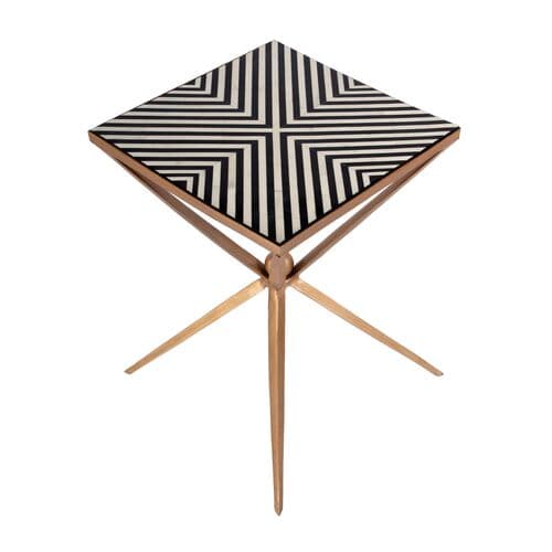 Hunter Bone Inlay Side Table - Black/White/Gold | End Table, Occasional Table, Small Table