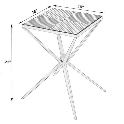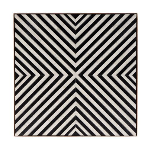 Elevate your living space with the striking charm of our side table. This exquisite piece features a beautifully crafted base, gracefully supporting a mesmerizing top with a bold geometric pattern, framed elegantly. At the heart of the base, a decorative element adds a unique artistic touch, making this table a captivating focal point in any room.