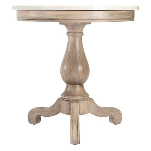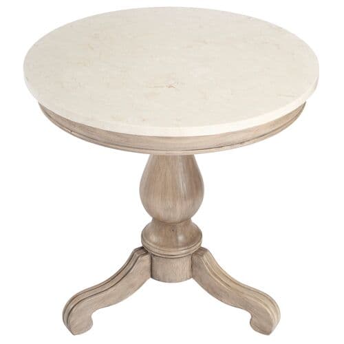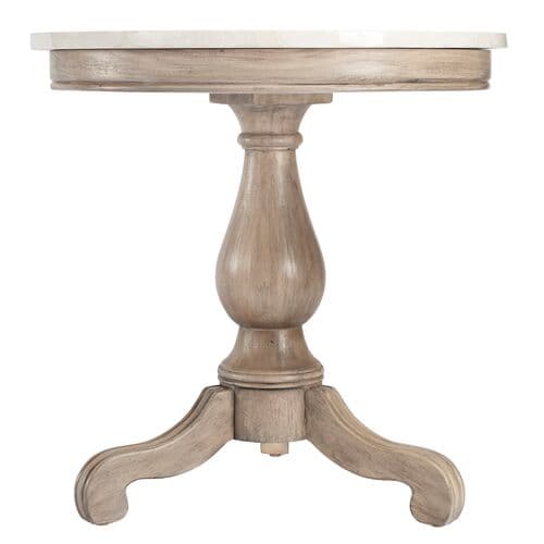 The Liam marble collection is a romantic blend of elegance and modern farmhouse charm. Crafted with exquisite attention to detail, this round side table features a stunning natural marble top that captivates the eye and enriches your living space with its beauty and functionality. The hand-carved wood pedestal base provides a perfect foundation, offering ample space for your cherished decorative items. This piece is a testament to quality craftsmanship, designed to be both a durable and enchanting addition to your home.