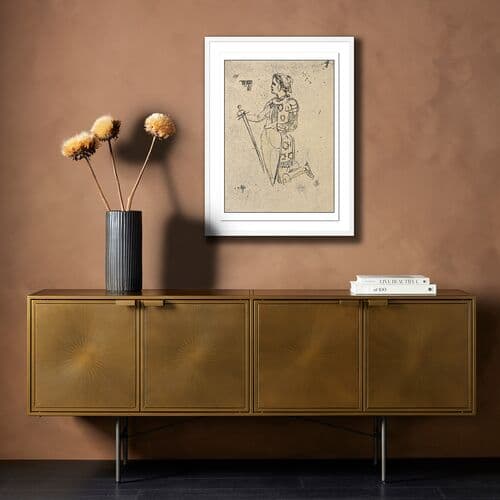 This Kneeling Knight sketch is hand assembled in a black frame.