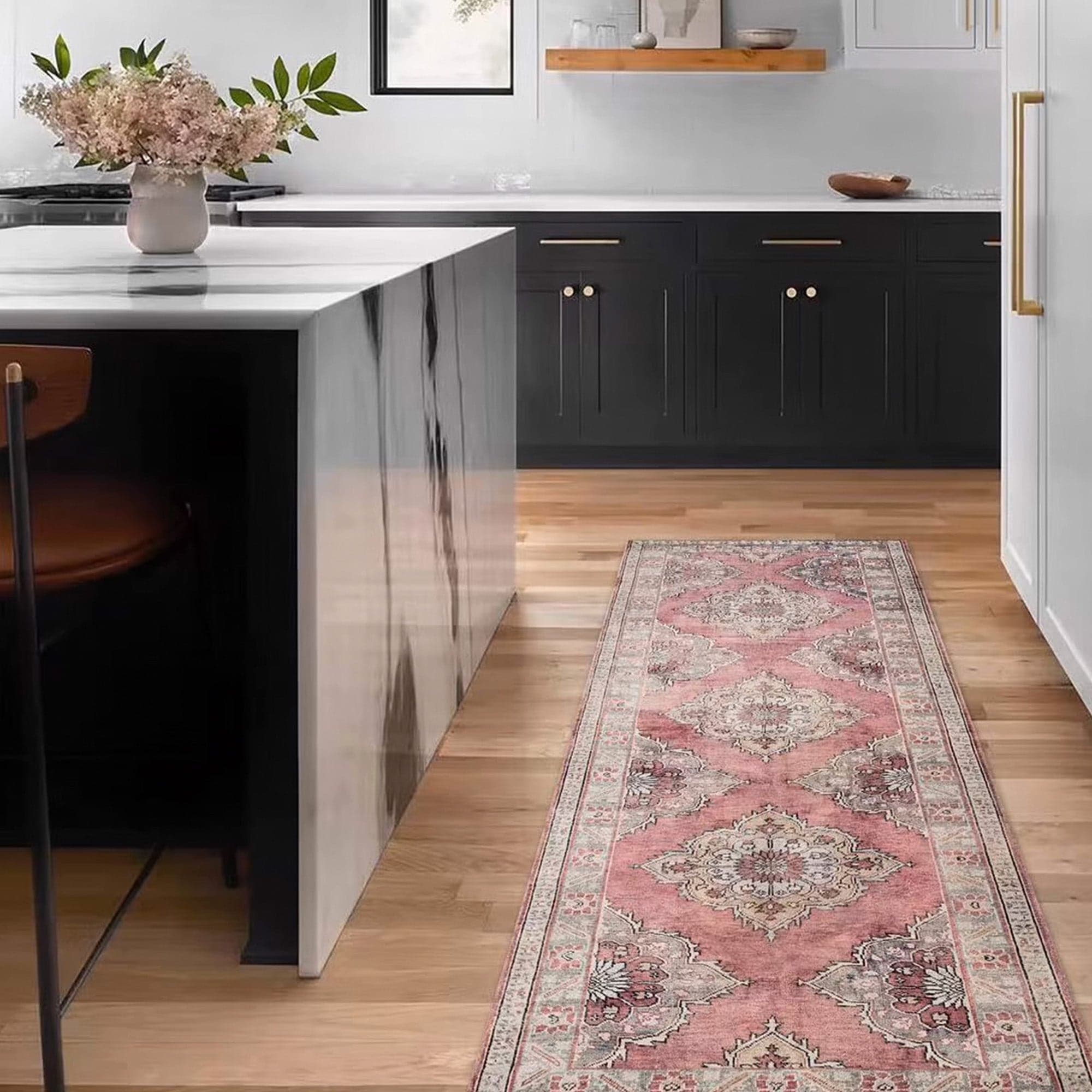 Slashop Easy Clean Rug Bohemian Style Spillproof Runner Rug - Blush Petal