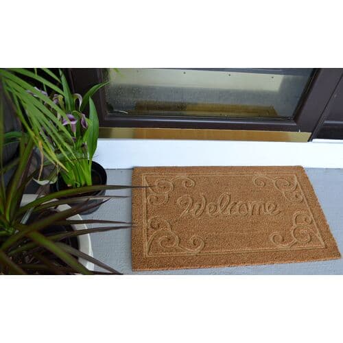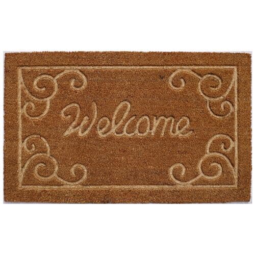 These vibrantly colored mats are created from natural coconut husk with PVC non-skid backing, and are printed with water-based weather-resistant dye.