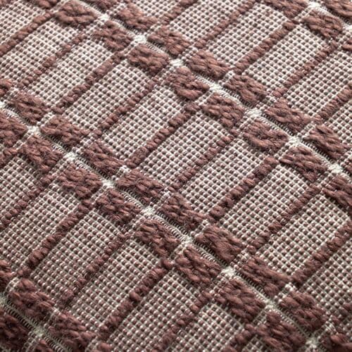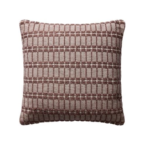 The Poe throw pillow features a textured geometric pattern in a muted two-toned design. The pillow cover is made of cotton and other fibers and measures 18" x 18", a standard size to style in living rooms and bedrooms.