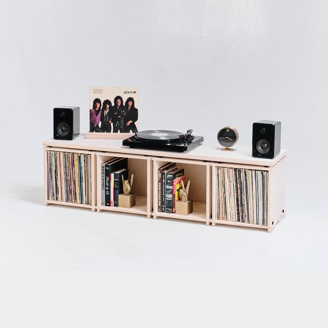 The BENCH crate set includes 4 of our modular vinyl storage cabinets and the Quad Topper. This Boxset is designed for small settings and those vinyl record collectors who need to be closer to their collection.