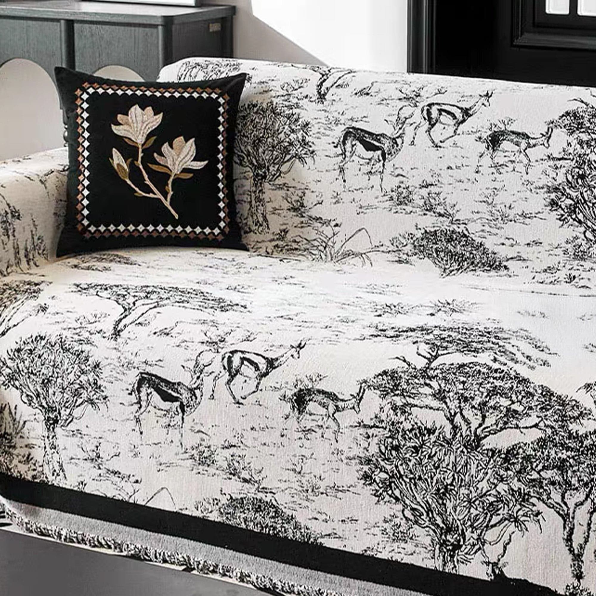 Slashop Safari Scene Sofa/Couch Cover - Monochrome Savannah