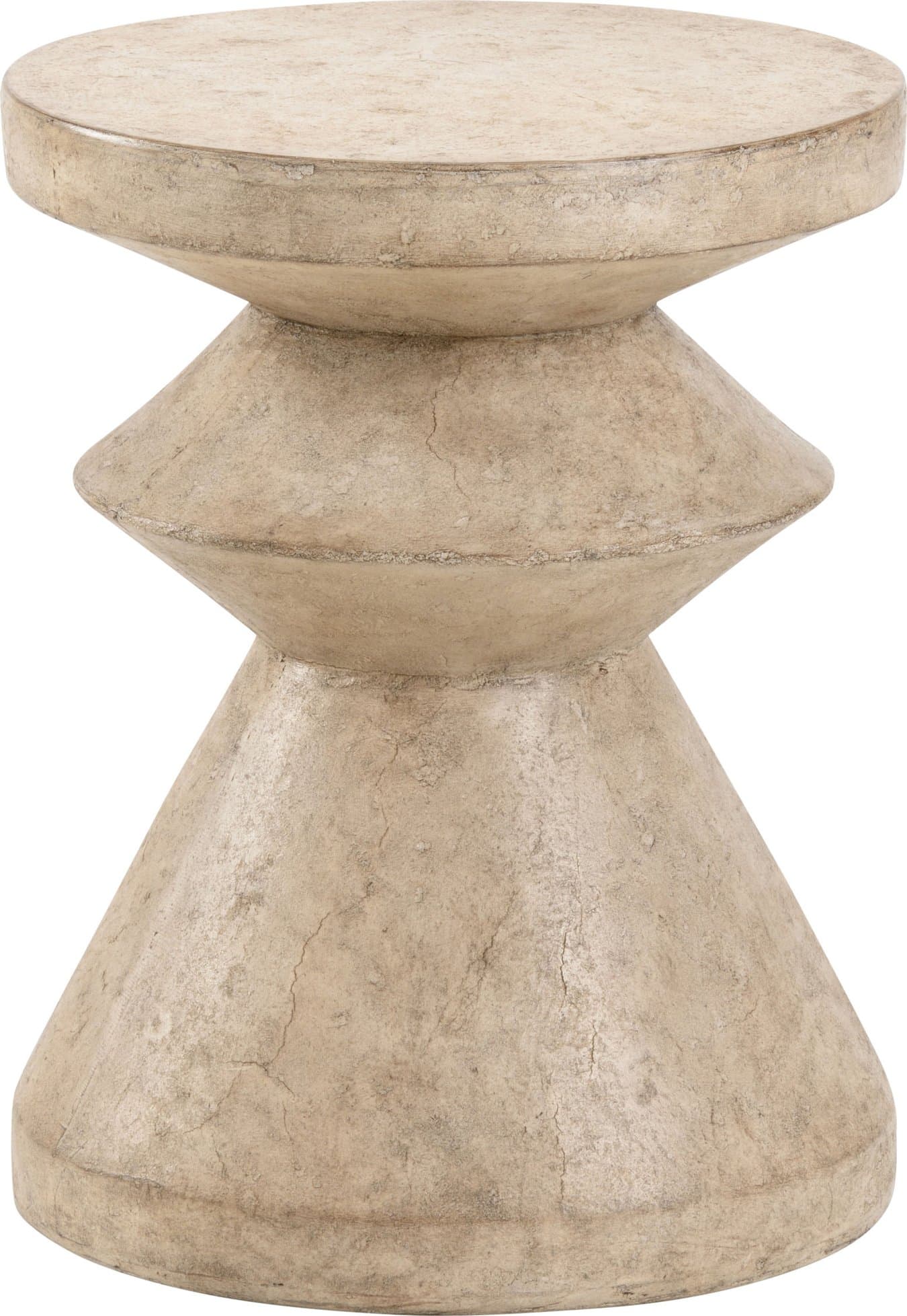 Small sculptural stool or table. Composite construction, textured concrete finish.