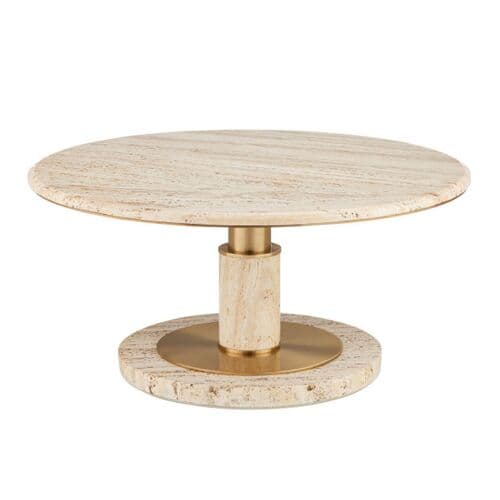 Miles Travertine Cocktail Table - Natural/Polished Brass - Currey & Company - Brown