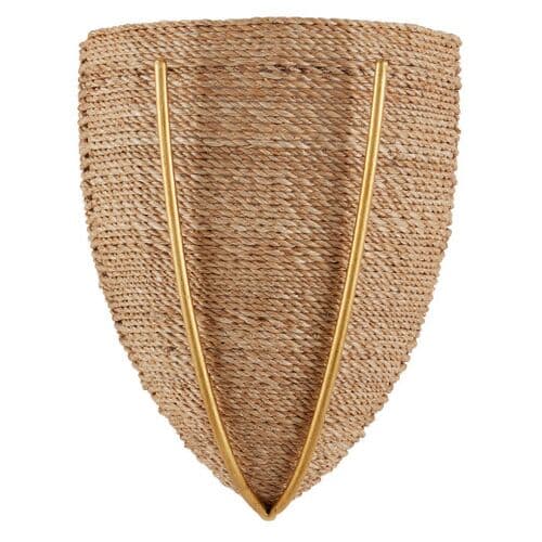 The Dreamscape Wall Sconce, made of natural abaca rope, is a woven creation designed by Ian Thornton. The seamless intersection of thin ribs of gold-leafed wrought iron start at the bottom and arc up along the surface, bringing the rope-wrapped wall sconce its contemporary flair. The natural material warms the overall effect.