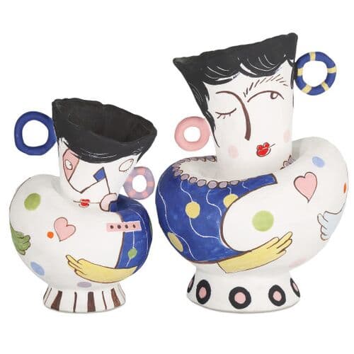 This set of Osamu Objects is the work of porcelain artist Xiao New, who created the pair of dancing vases to draw a smile! A hint of cubism is melded with a heavy dose of whimsy, particularly in the visuals created by the artist that give the characters on each piece such avant-garde personalities. Because these are hand-painted, each one will vary slightly, though each promises to be equally entertaining!