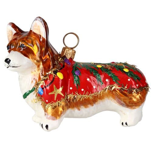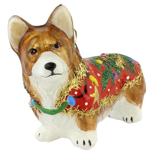 A charming addition to the tree, this Corgi ornament is handcrafted of mouth-blown glass and hand-painted by artisans in Poland.