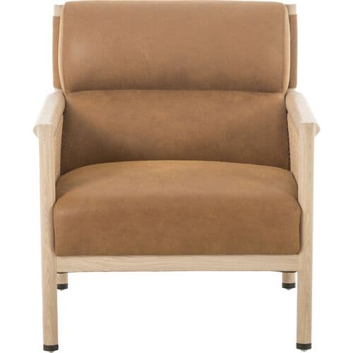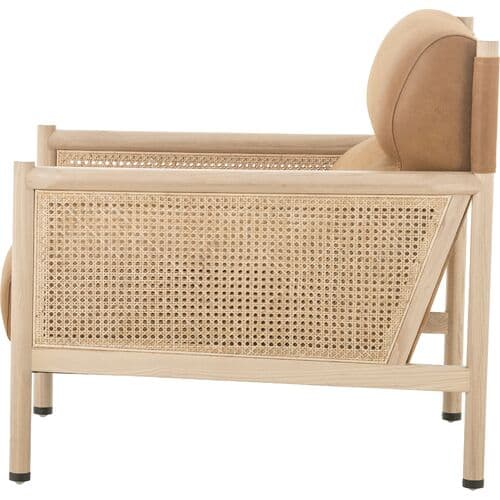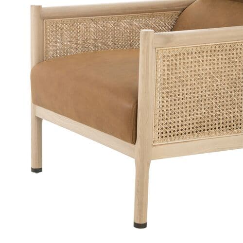Lauren Cane Accent Chair - Kennison Cognac Leather - Beige, Comfortable, Durable, Cushioned