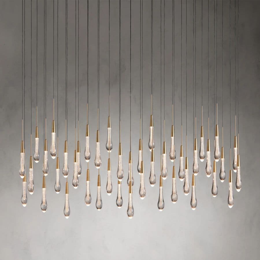 Description Featuring adjustable PVC cords cascading into integrated LED lights handcrafted from seeded glass, this Lighting Collection mimics the look of a fallen raindrop. Dimension: